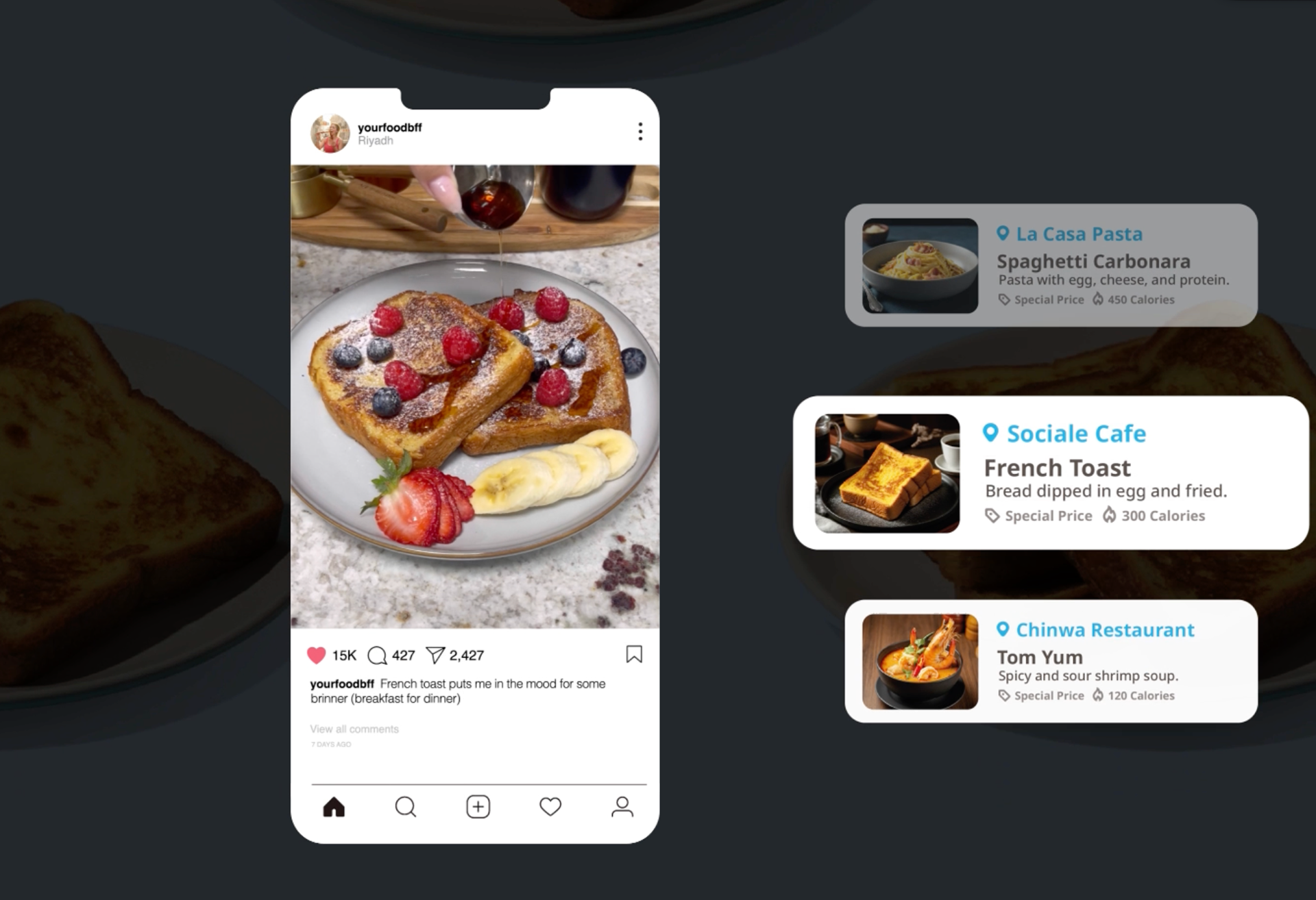 Using AI integration, our Bot recognised the dish, paired it with one of our restaurants through geolocation,